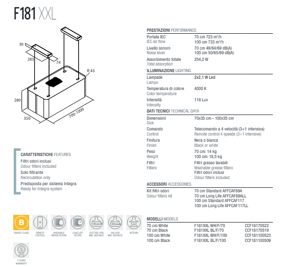 קולט אי תלוי 70 ס"מ כושר יניקה גבוה, סינון שומנים וריחות